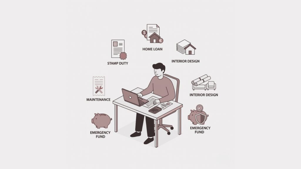 Karnataka’s stamp duty and registration fees add roughly 7-8% to property costs. Include home loan processing charges, insurance premiums, interior fit-out expenses, maintenance deposits, and six months of emergency reserves for unexpected repairs.
